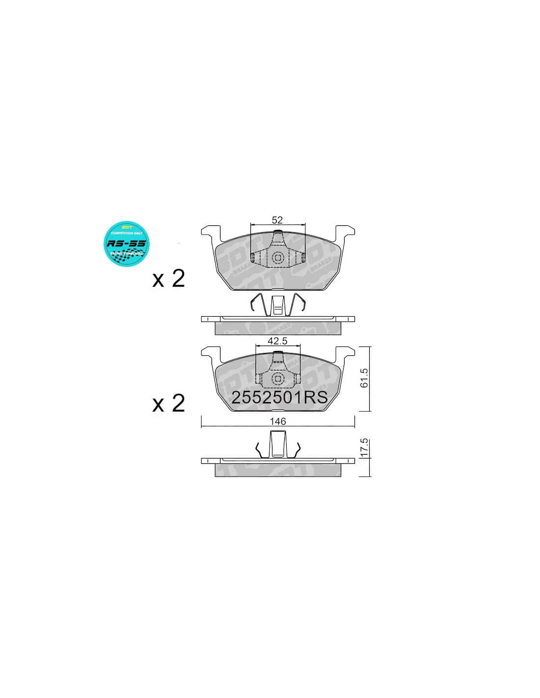FRONT RACING RS55 BRAKEPADS AUDI A1 SEAT ARONA IBIZA 6F SKODA KAMIQ SCALA VW POLO TCROSS TAIGO
